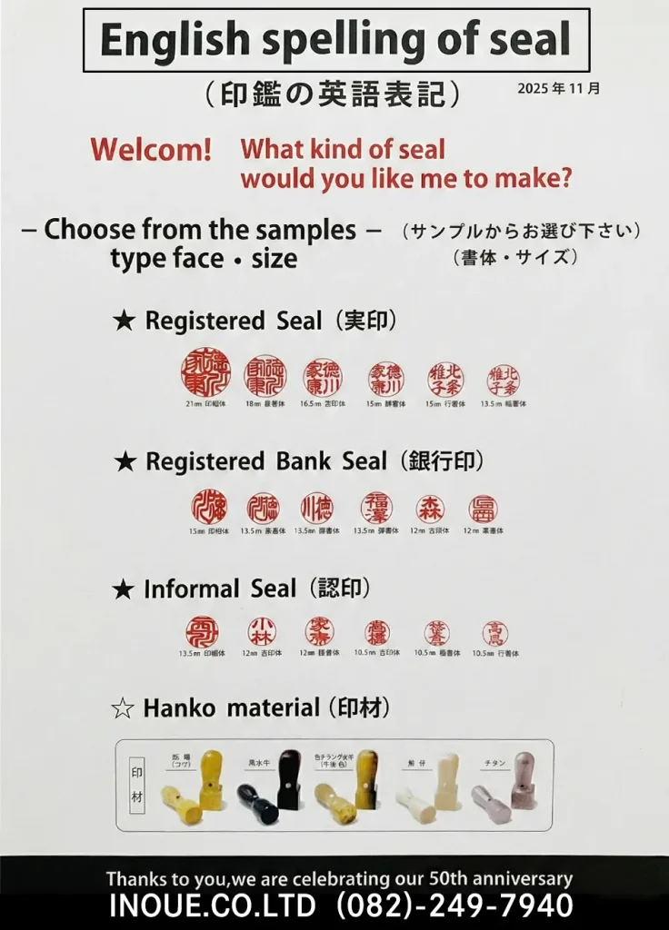 | 有限会社 井上印房 〒 730-0046 広島県広島市中区 昭和町3-25 広島電車ひろでん 広島電鉄5号線 皆実線 「比治山橋駅」下車 徒歩4分 バス 「昭和町」バス停下車 |